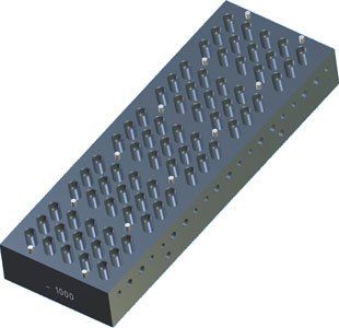 3D-CAD-Modell eines Tiefziehwerkzeuges mit ovalen Näpfen für Oval-Oblongtabletten.